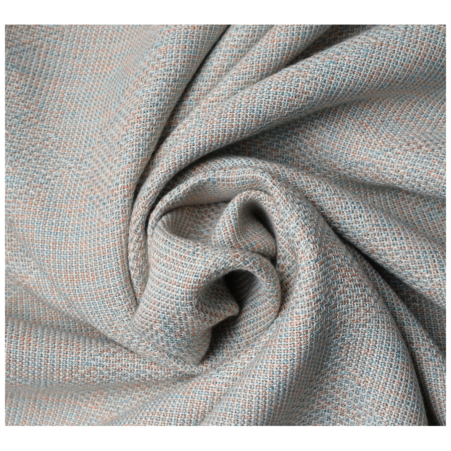 Качественная ткань имеет геометрический рисунок в виде ромбов. Лицевая сторона ткани похожа на рогожку, а изнаночная гладкая, шторы из этой ткани придают комнате завершенный вид.