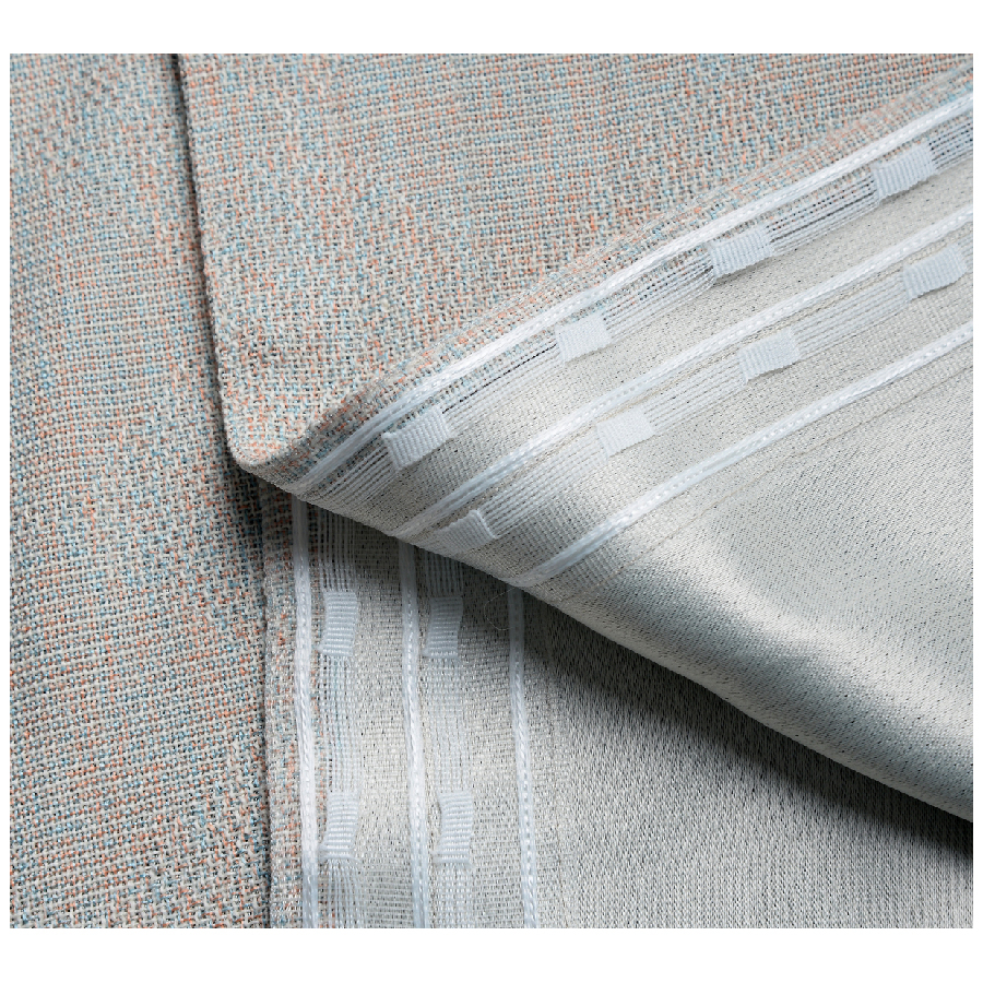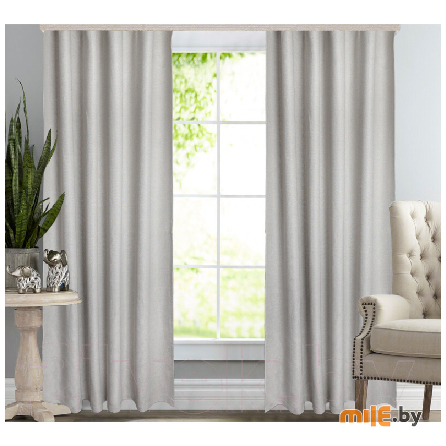 Шторы простые в эксплуатации и легки в уходе. По верхнему краю шторы пришита шторная тесьма шириной 59 мм, которая имеет два ряда петель. Тесьма позволяет корректировать высоту +/- 2 см для круглопалочного карниза, легко формирует равномерные складки и ширину шторы, путем стягивания. Шторы вывешиваются на карниз при помощи крючков. Плотность — 350 г/м².