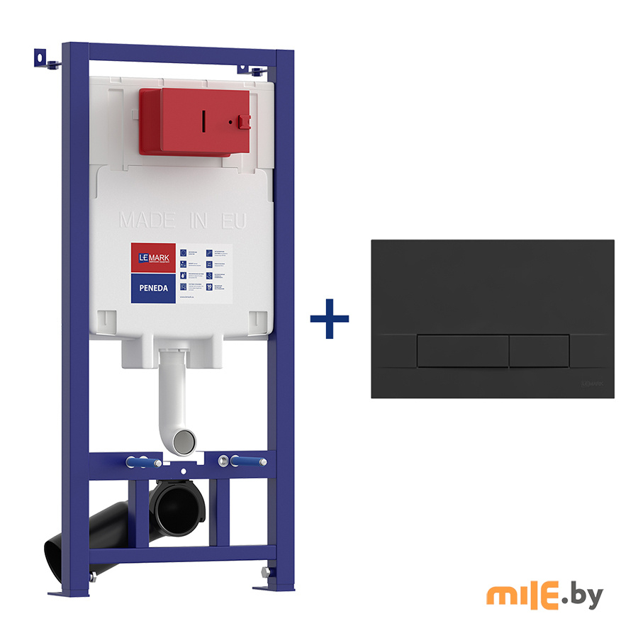 Комплект 2в1: Инсталляция Lemark Peneda для унитазов с кнопкой смыва Bit (9880213) чёрный матовый