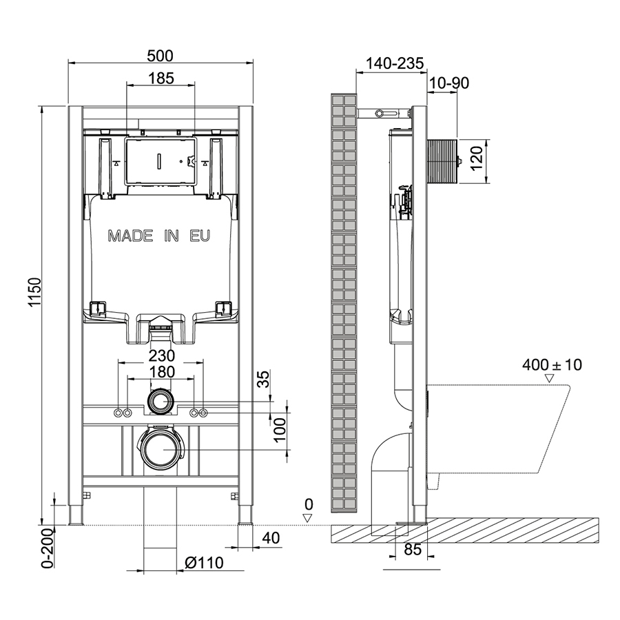 СИСТЕМА УСТАНОВКИ подходит для легких и несущих стен и всех видов подвесных унитазов.