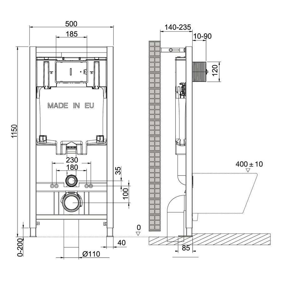 СИСТЕМА УСТАНОВКИ подходит для легких и несущих стен и всех видов подвесных унитазов.