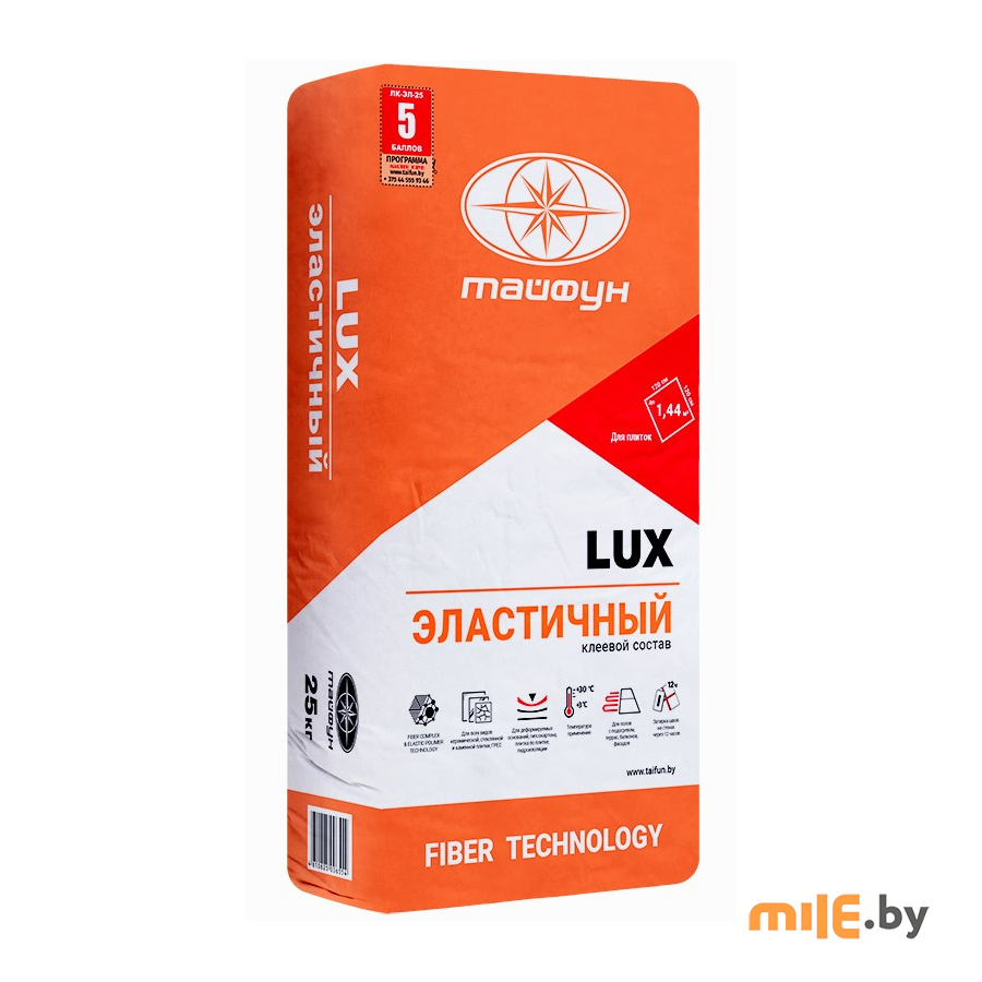 Клей для плитки эластичный Тайфун Люкс 25 кг предназначен для облицовки минеральных оснований керамической плиткой, мозаикой, натуральным и искусственным камнем, эксплуатируемых в условиях повышенной влажности, подвергающихся термическим и динамическим нагрузкам - терассы, балконы, производить облицовочные работы по существующему плиточному покрытию. Применяется для наружных и внутренних работ.