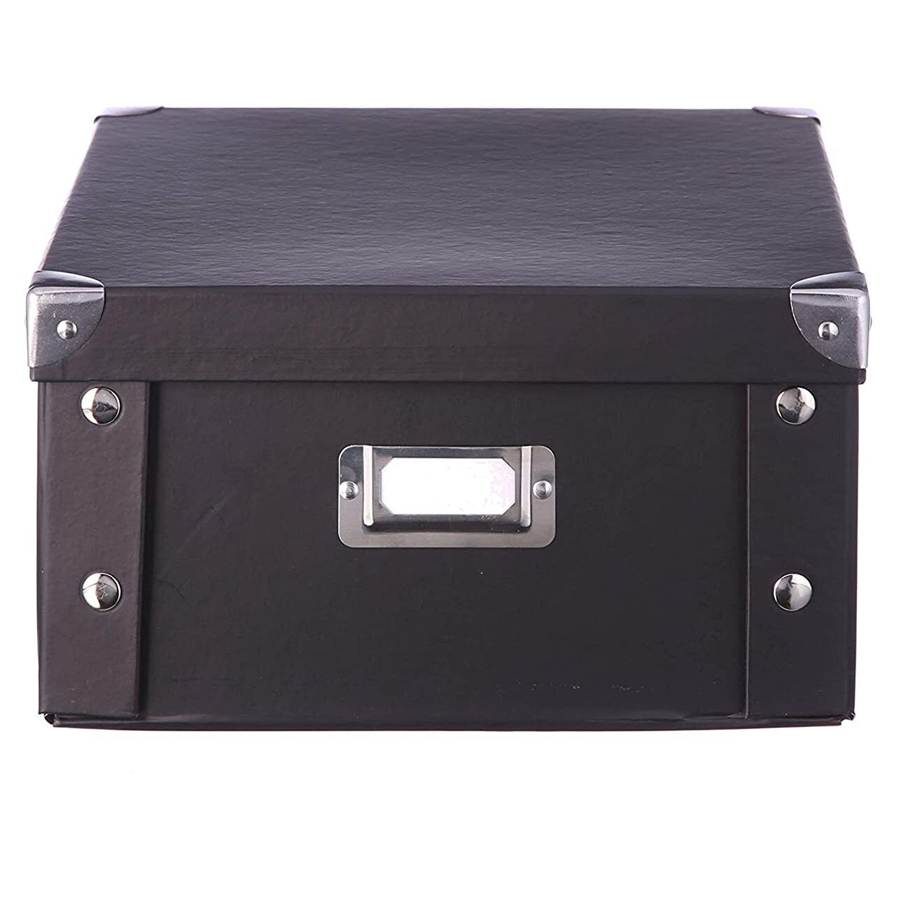 Стильный и удобный ящик для хранения с крышкой , доступный в разных размерах. Выберите правильный размер для ваших мелочей или бумаг и напишите на этикетке, что хранится в коробке, чтобы вы никогда не потеряли это снова. Ящик для хранения серый изготовлен из прочного картона и имеет металлические уголки по бокам крышки, благодаря чему ящики для хранения прослужат долго. Коробку для хранения легко собрать с помощью кнопок, которые гарантируют, что вы сможете снова сложить коробку после использования. Поставляется с полем для этикетки, чтобы вы могли легко увидеть на коробке, что вы храните в ней.