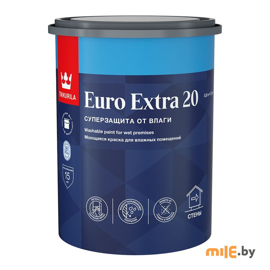 Латексная интерьерная краска Тиккурила Экстра 20 с полуматовым блеском для окрашивания стен и потолков на кухнях, в ванных комнатах, душевых и санузлах. Также материал применим для отделки в сухих помещениях с высокими требованиями к износостойкости покрытий. Краска обладает нейтральным запахом, отвечает экологическим нормам Евросоюза по концентрации летучих органических компонентов. ЛКМ можно без рисков для здоровья применять в жилых домах, детсадах, школах, больницах и административных учреждениях.