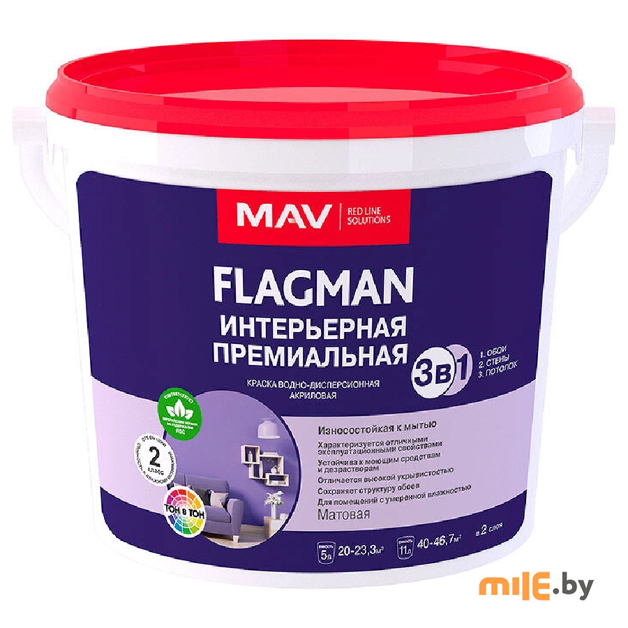 Краска Flagman интерьерная моющаяся база TR 5 л (6,5 кг)