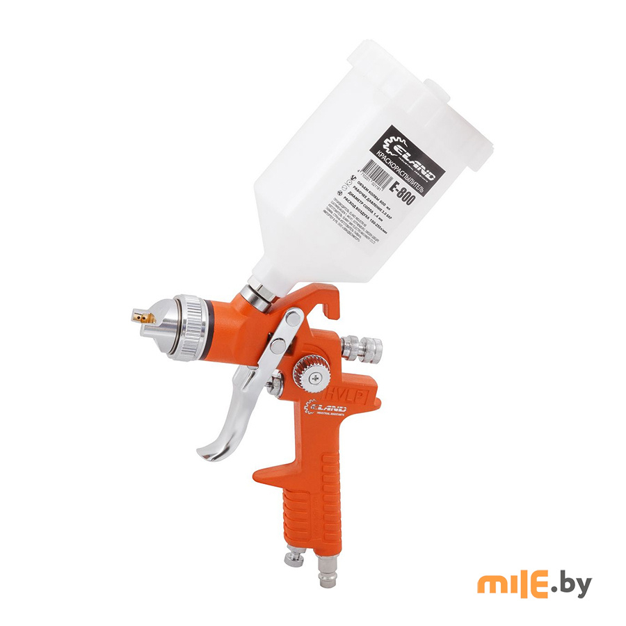 Краскопульт пневматический Eland E-800 предназначен для выполнения окрасочных работ методом распыления лакокрасочных материалов сжатым воздухом; подходит для локальных работ по нанесению грунтов, эмалей, лаков, в том числе двухкомпонентных, финиш-красок в процессах, требующих высокого качества окрашивания. Не подходит для работы с составами на основе ди-, трихлорэтана, бензина, абразивных материалов, красок на кислотной основе.