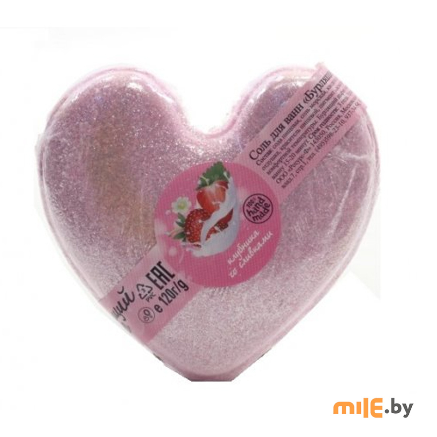 Соль для ванны Бурлящий шар Сердечко Клубника со сливками 120 г