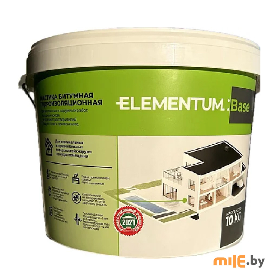 Мастика гидроизоляционная битумно-латексная Elementum Base 5 кг - представляет собой битумно-латексную эмульсию, содержащую различные модифицирующие добавки. Мастика не содержит растворителей.