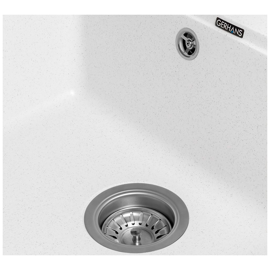 Каменная мойка для кухни Gerhans А12-18 из искусственного камня без крыла белая. Классическая прямоугольная мойка компактного размера позволяет установить ее в узкий кухонный модуль. Глубокая чаша вмещает большое количество комплектов посуды.