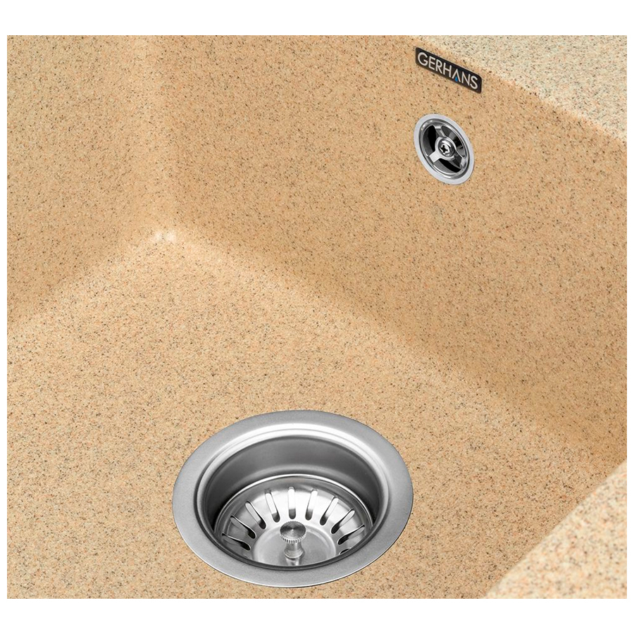 Каменная мойка для кухни Gerhans B29-21 из искусственного камня с крылом песочная. Компактная прямоугольная мойка из искусственного камня с крылом для сушки посуды идеальна для маленьких кухонь с ограниченным пространством. Закругленные края облегчают уборку, а желоба на крыле обеспечивают слив воды с площадки для мокрой посуды. Строгие прямые линии кухонной раковины подчеркнуты легким овальным срезом острых углов.