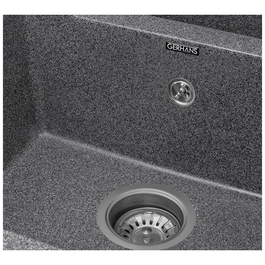 Мойка для кухни из гранита Gerhans C01 - замечательная компактная модель с глубокой основной и небольшой дополнительной чашей, увеличивающей функциональность мойки. Модель имеет строгую геометрическую форму, однако углы закруглёны, что придаёт изделию стилевой акцент. Композитный материал на основе гранита с улучшенными прочтностными характеристиками Gerhans C01 практичен, долго сохраняет внешний вид изделия и не требует особого ухода.
