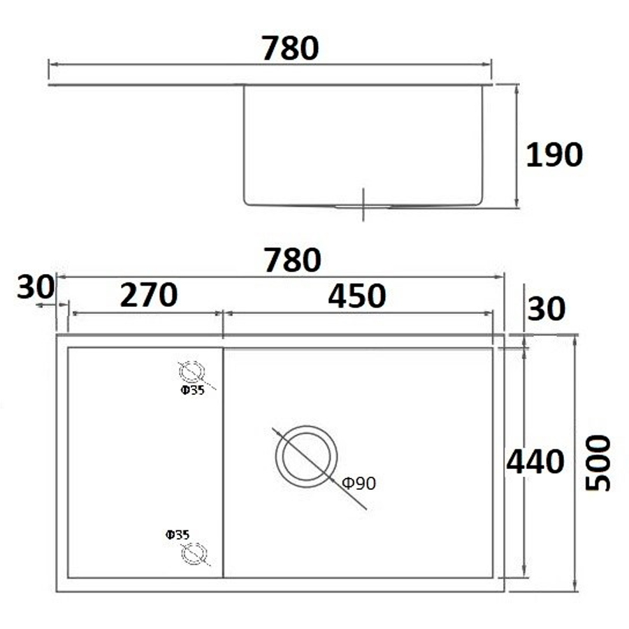 Gerhans K37850-X - врезная на столешницу/врезная под столешницу/врезная вровень со столешницей, нержавеющая сталь, размеры: 50x78 см.