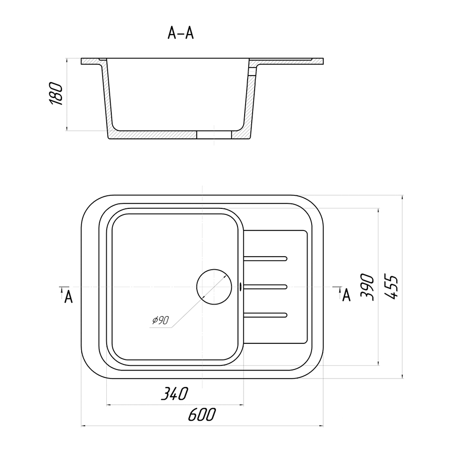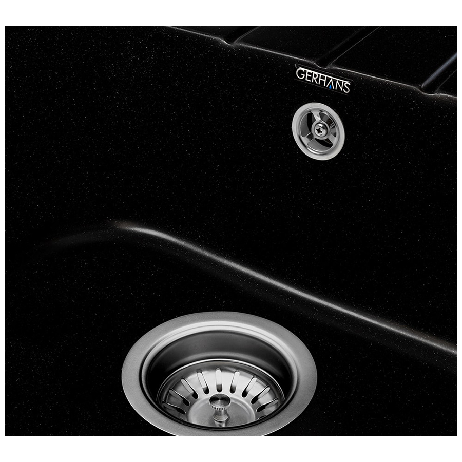 Кухонная мойка Gerhans В20 может устанавливаться крылом как в левую, так и в правую стороны. Отметки для высверливания отверстия намечены с обратной стороны крыла мойки. Отверстие рекомендуется делать алмазной коронкой, диаметром 35 мм. Несмотря на небольшой размер, мойка оснащена широкой чашей в комбинации с крылом для сушки посуды. Мягкие плавные линии изделия обеспечивают надежный слив воды с мокрой посуды.