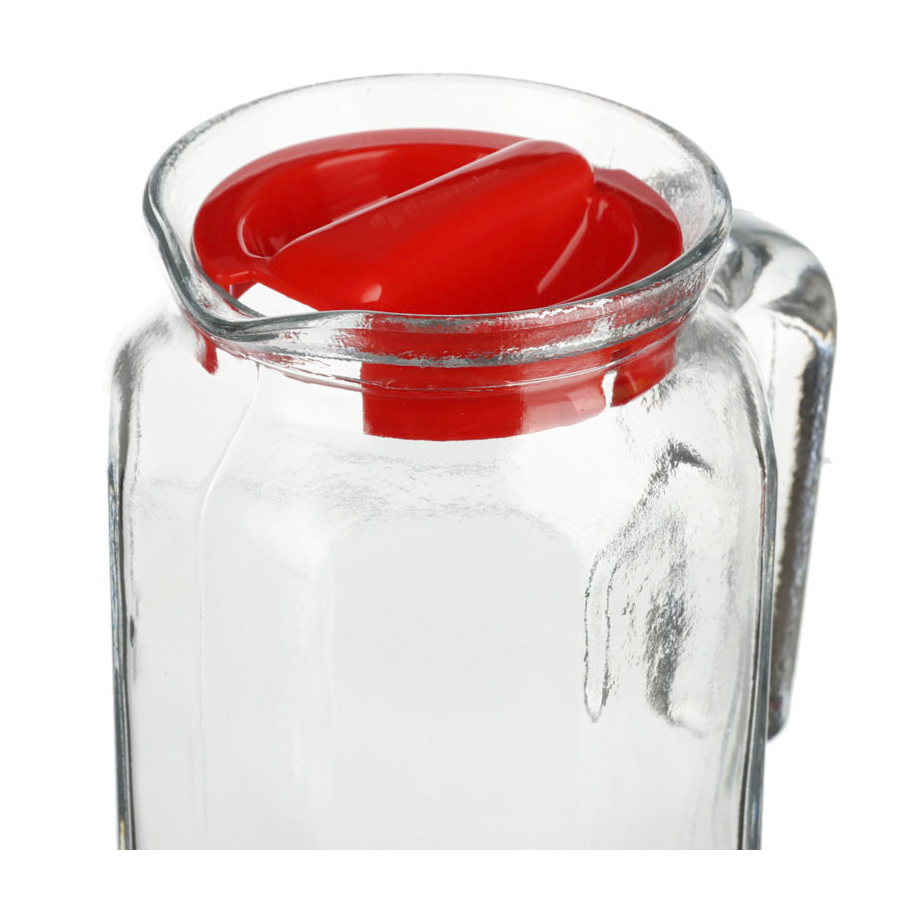 Кувшин Pasabahce Kosem, выполненный из прочного натрий-кальций-силикатного стекла, элегантно украсит ваш стол. Такой кувшин прекрасно подойдет для подачи воды, сока, компота и других напитков. Кувшин плотно закрывается красной пластиковой крышкой. Крышка устроена таким образом, что выливать жидкость можно не снимая ее, так как напиток будет проходить через специальную выемку. Совершенные формы и изящный дизайн, несомненно, придутся по душе любителям классического стиля. Кувшин Pasabahce Kosem дополнит интерьер вашей кухни и станет замечательным подарком к любому празднику. Можно мыть в посудомоечной машине.
