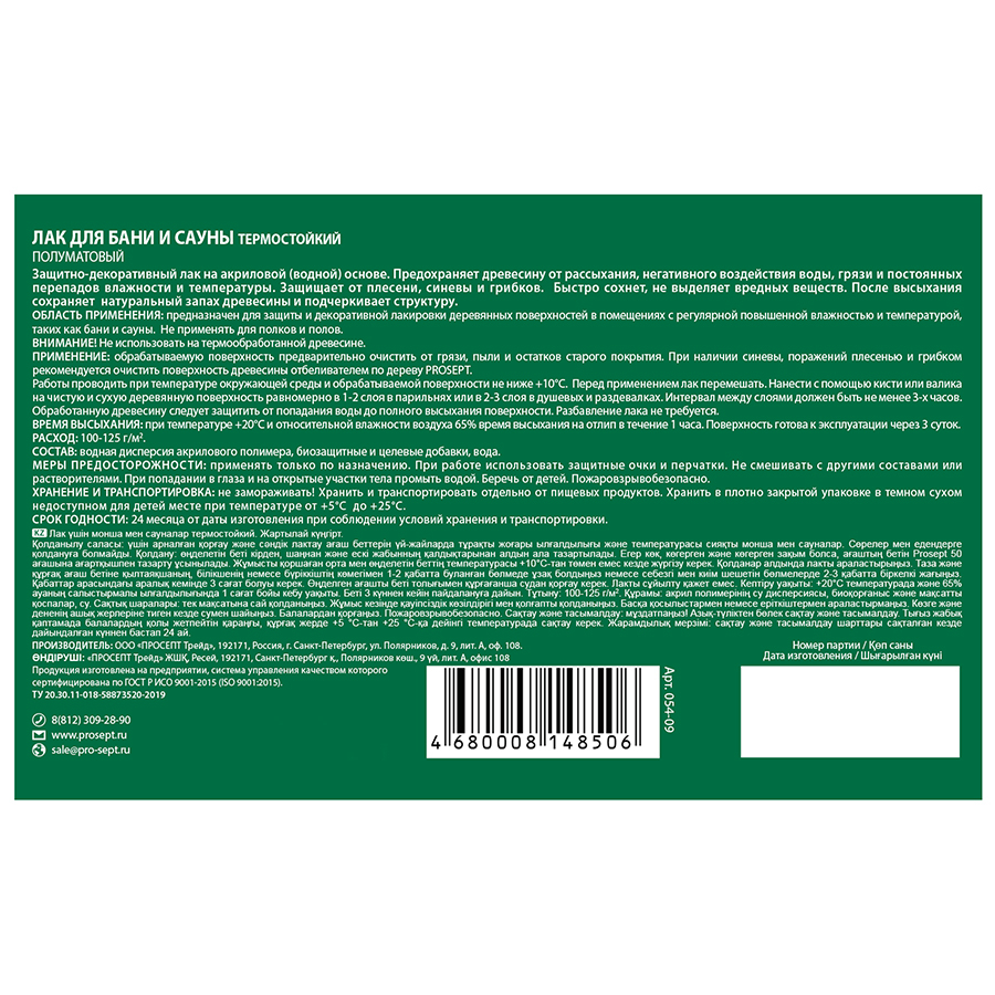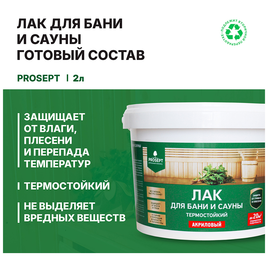 ОБЛАСТЬ ПРИМЕНЕНИЯ: предназначен для защиты и декоративной лакировки деревянных поверхностей в помещениях с регулярной повышенной влажностью и температурой, таких как бани и сауны.