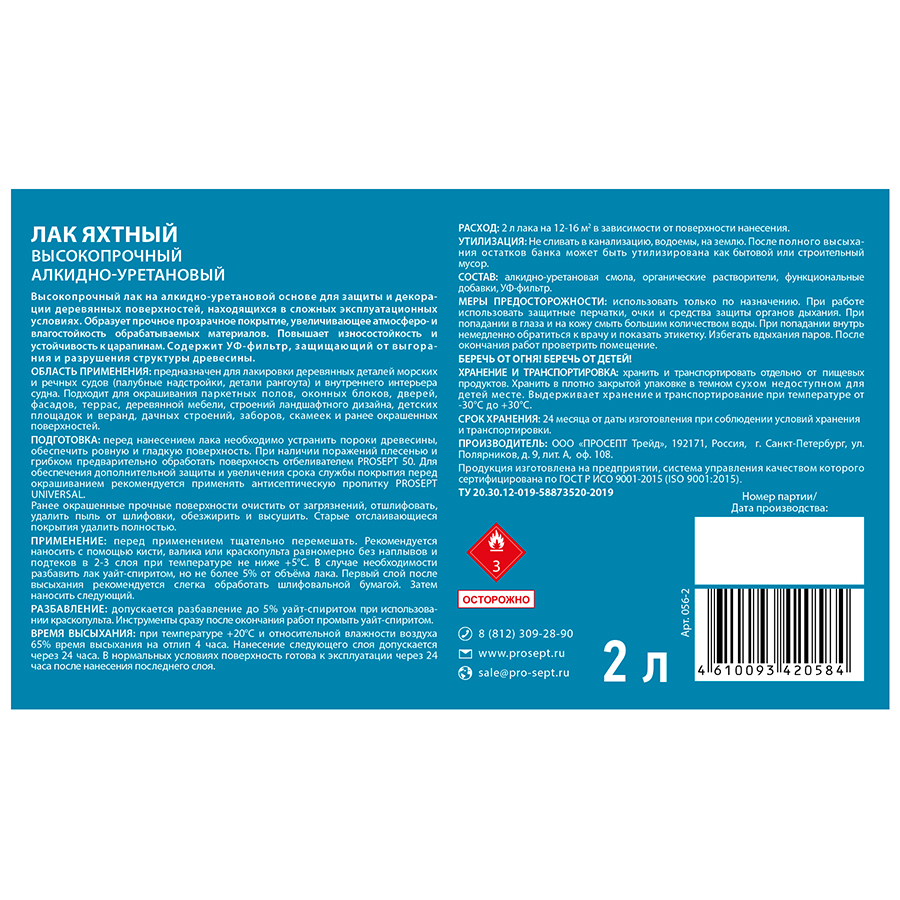 Лак Яхтный алкидно-уретановый Prosept (056-2) 2 л