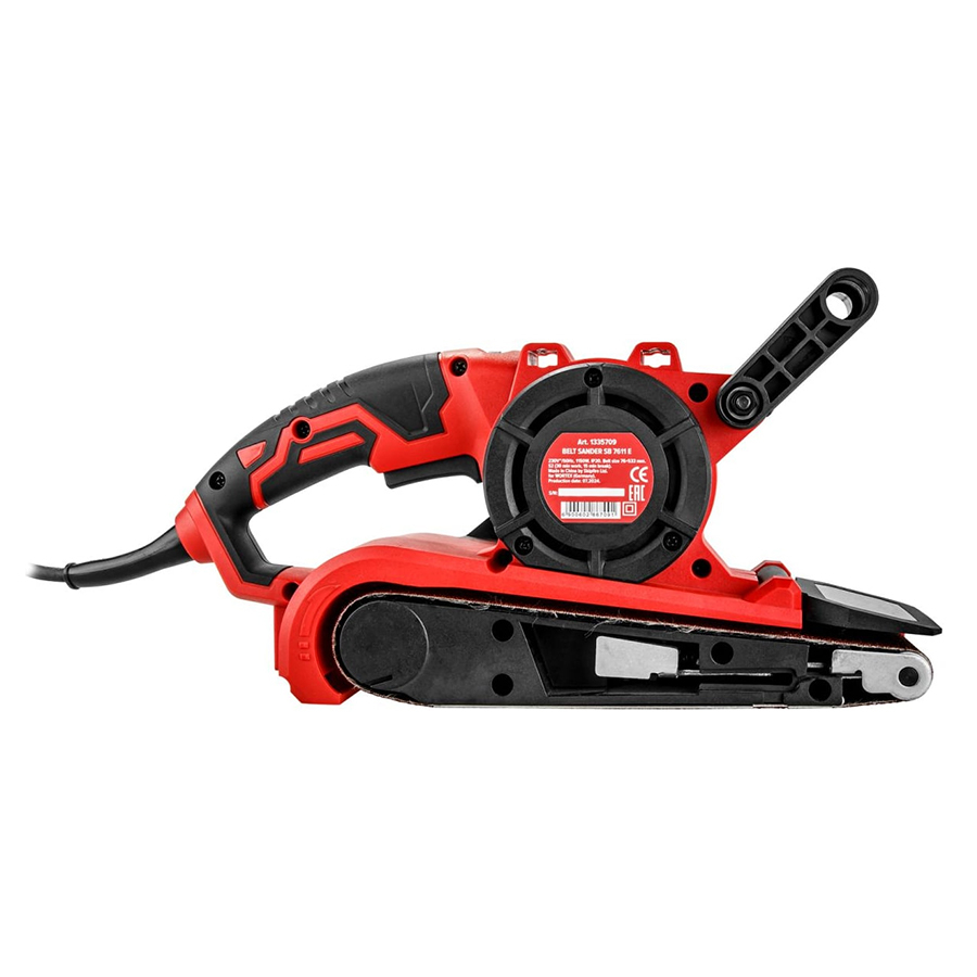 Удобная машина для снятия, выравнивания поверхности и зачистки древесины, пластика и металла. Дополнительная ручка обеспечивает точное управление ленточной шлифмашиной.