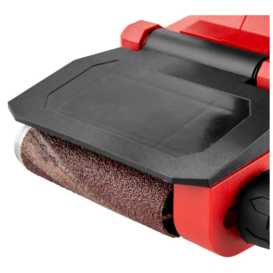 Откидной носик позволяет шлифовать труднодоступные места. Специальный рычаг позволяет отрегулировать положение шлифленты.