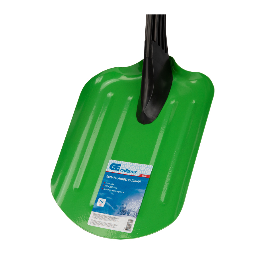 Универсальная стальная лопата Сибртех 61623 размером 205 х 280 х 640 мм, с пластиковым черенком, будет полезна автомобилистам, дачникам и строителям. Ее можно использовать для чистки снега на небольших участках и для погрузки сыпучих материалов. Благодаря пластиковому черенку инструмент весит всего 522 г, поэтому с ним легко справится любой пользователь.