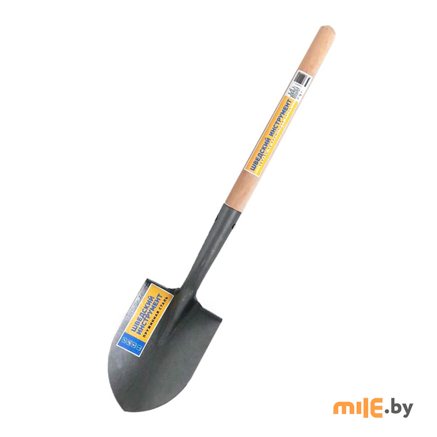 Прочная лопата из выскоуглеродистой пружинной стали, черенок березовый высшего сорта.