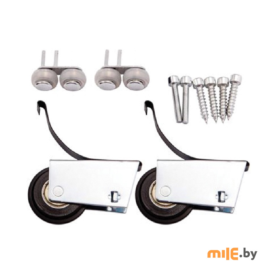 В комплекте: 2 нижн.ролика, 2 верхн.ролика, 4 самореза, 2 регулировочных винта.