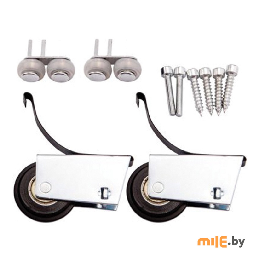 2 нижних ролика, 2 верхних ролика, 4 самореза, 2 регулировочных винта.