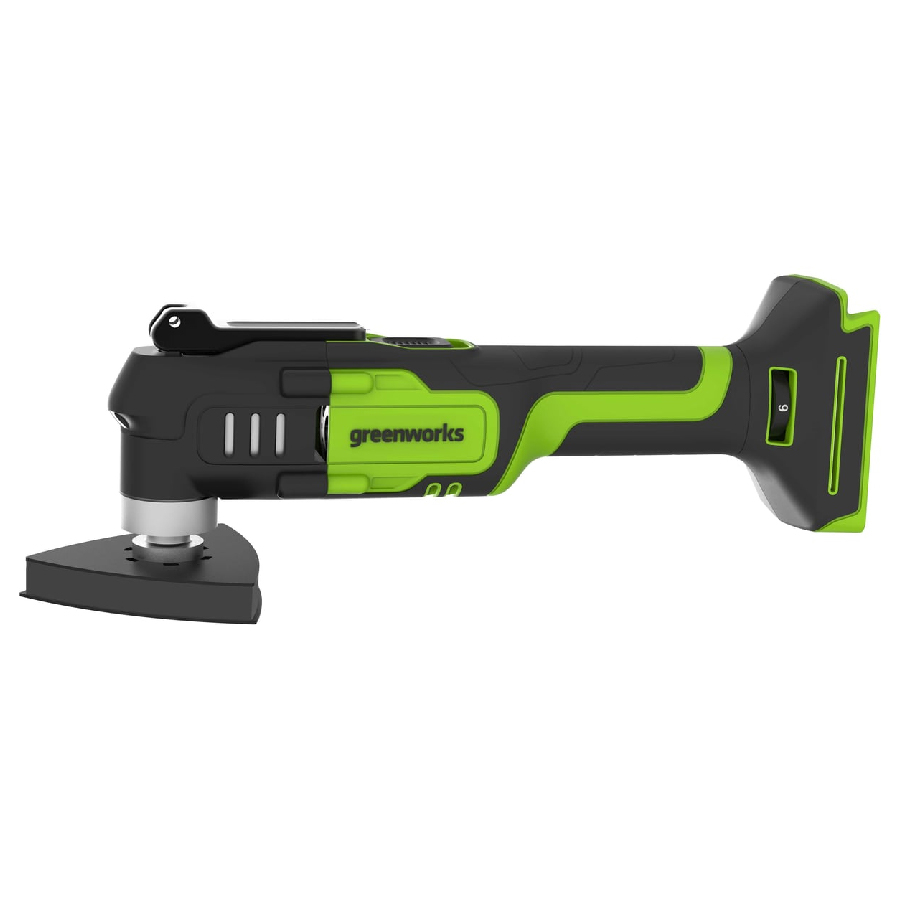 Реноватор аккумуляторный Greenworks 3400307, 24 В, без АКБ и ЗУ - это многофункциональный инструмент для резки гипсокартона, металла, дерева, пластика, композитных материалов. Также используется для чистой шлифовки. Позволяет быстро и легко производить погружное врезание в материал или резать заподлицо без повреждения его поверхности.