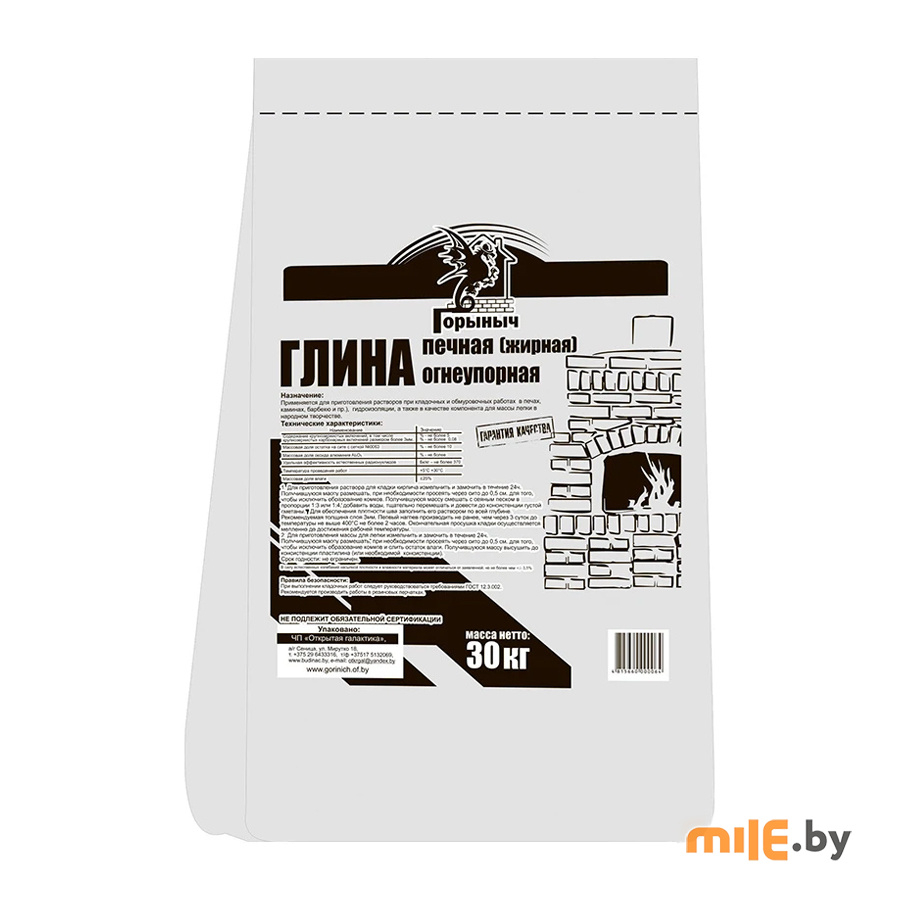 Глина печная пластичная жирная Горыныч 30 кг