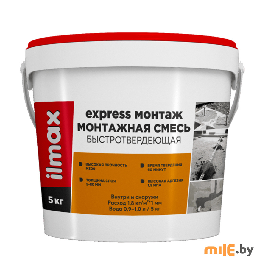 ilmax express монтаж – безусадочная, быстротвердеющая смесь для монтажа различных элементов с толщиной слоя 5–80 мм (локально до 100 мм). Специальные цементы, тщательно подобранная фракция заполнителя, комплекс добавок обеспечивают стойкость к образованию трещин, высокую адгезию и прочность, а также морозостойкость.