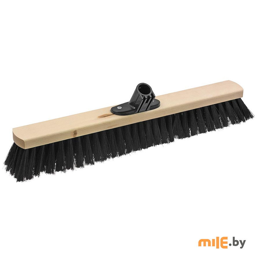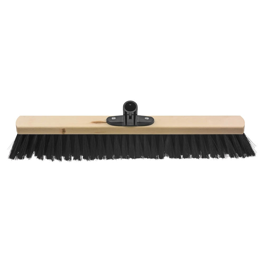 Щетка для улицы шириной 40 см с черной пластиковой щетиной и деревянным седлом с опорой для ручки.