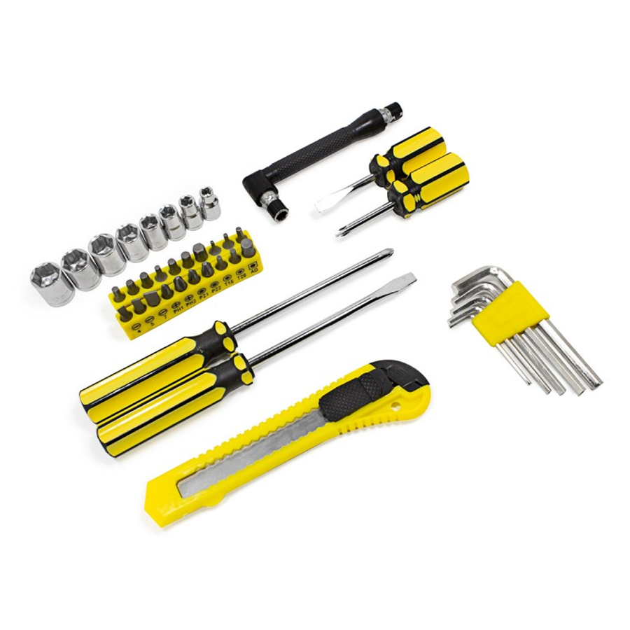 Универсальный набор инструментов из 54 предметов содержит самые необходимые предметы для выполнения слесарных и ремонтных работ. Все инструменты изготовлены из высокопрочного сплава металла, что дает им надежность, прочность и устойчивость к коррозии. Посадочный квадрат: 1/4" (одна четвертая дюйма).