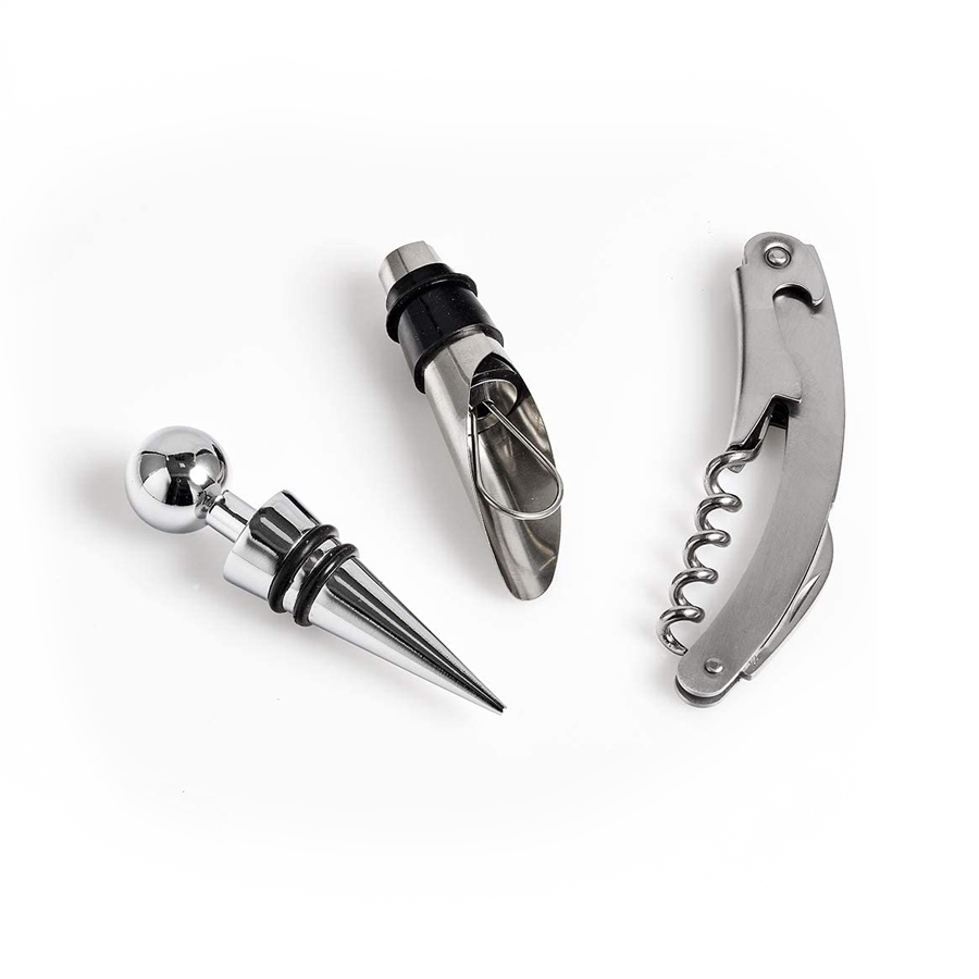 Побалуйте себя и своих гостей с высококачественным набором для вина ZELLER 25583 (4 шт.). Он пригодится на любой кухне, в баре или на пикнике. В набор входят: пробка, носик для наливания и многофункциональный штопор для вина (раскладывающийся нож Somelier и штопор), закрытые в оригинальной упаковке из каучукового дерева, в форме винной бутылки. Идеально подходит для подарка. Материалы: нержавеющая сталь, каучуковое дерево и стекло.