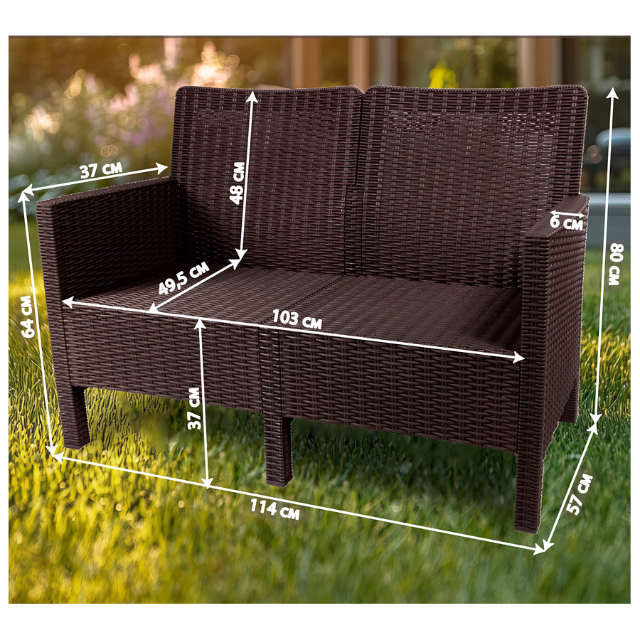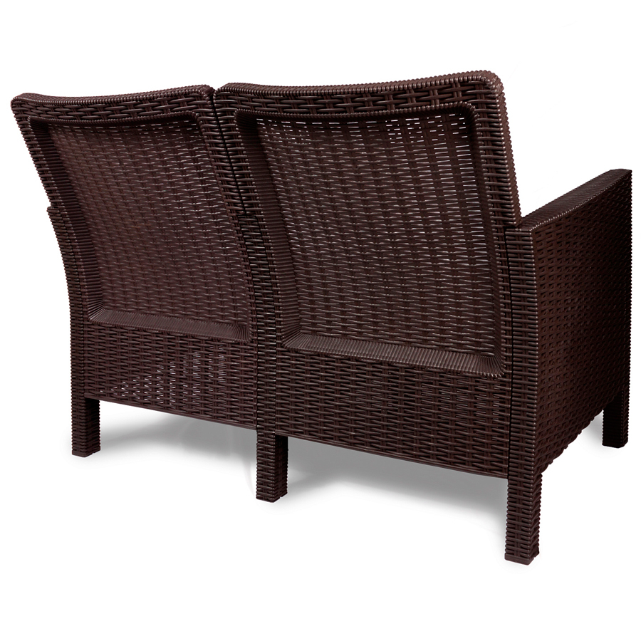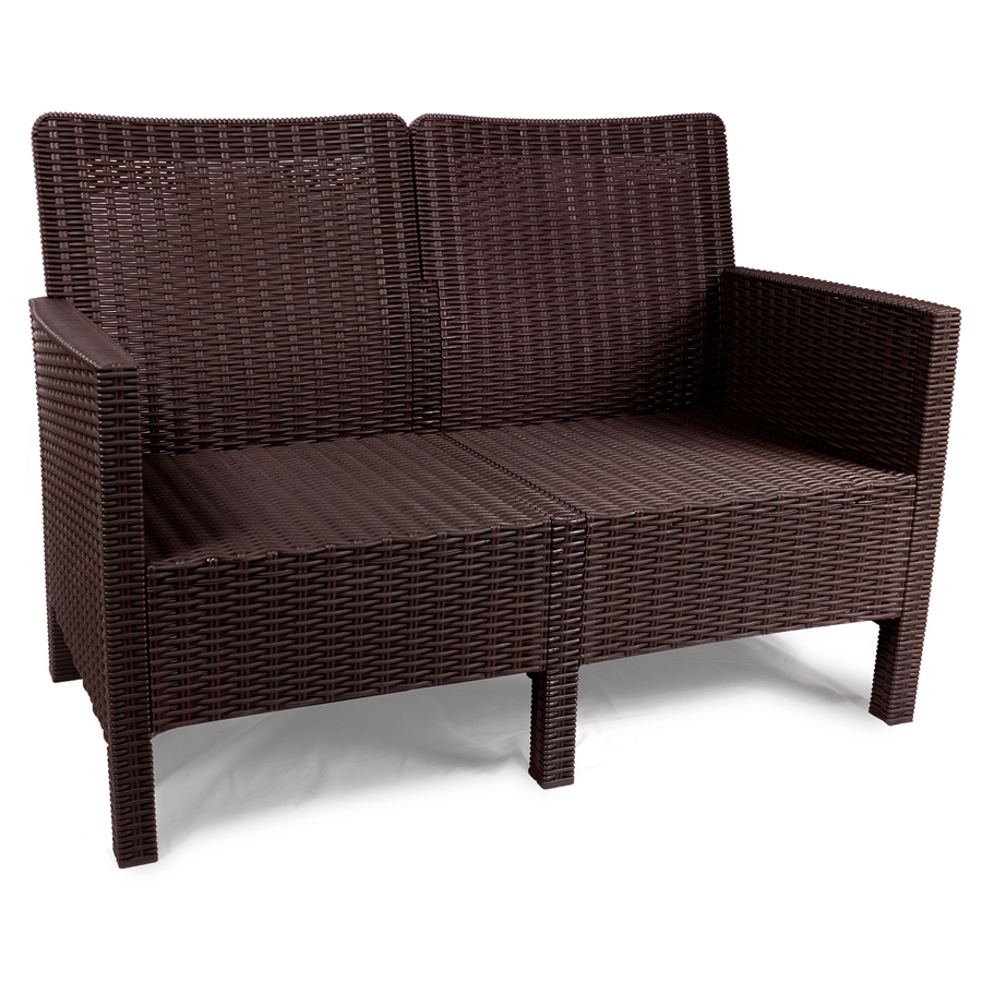 Диван двухместный под искусственный ротанг для вашего сада, террасы, лоджии или дачи. Диван выполнен из высококачественного пластика, устойчивого к ультрафиолету и перепадам температур, что гарантирует долговечность даже в суровых погодных условиях. Выдерживает нагрузку до 240 кг. Разборная конструкция крепления "паз-в-паз".