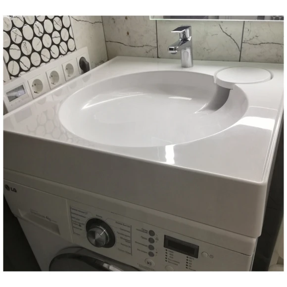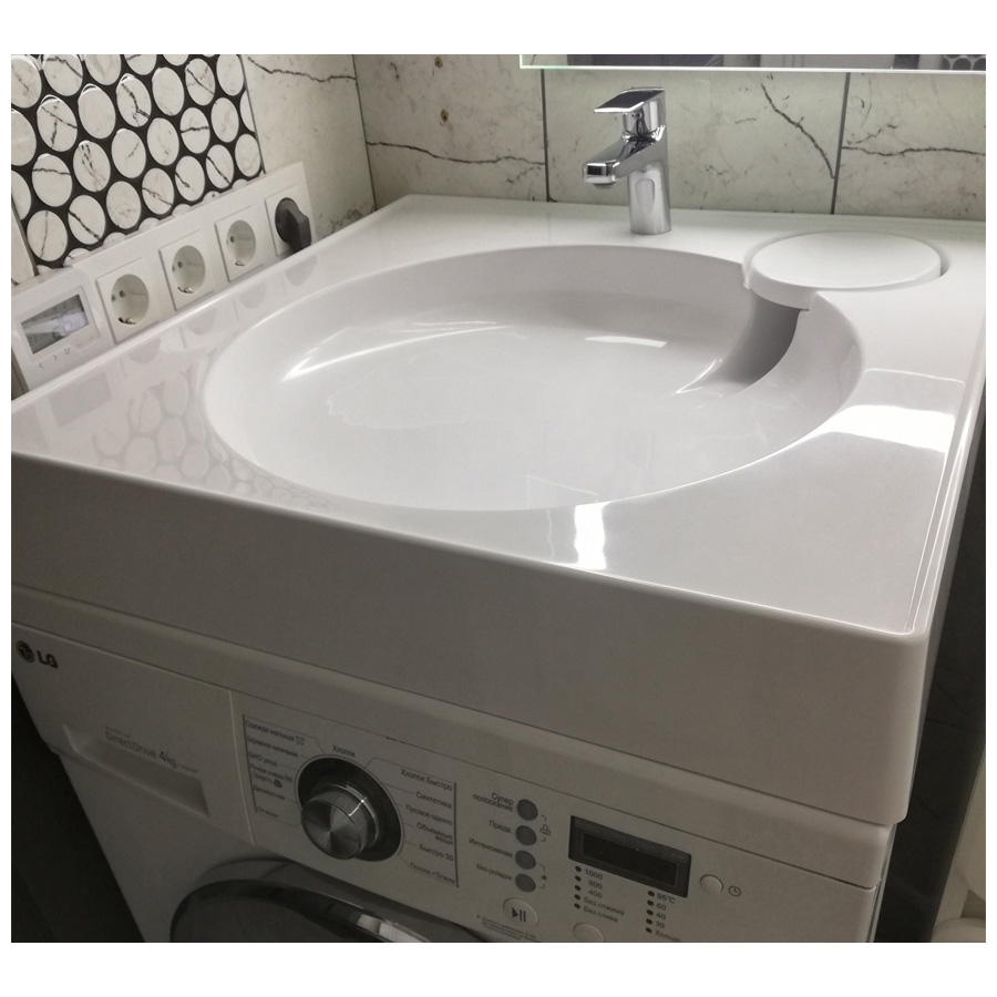 Очеь удачное решение для небольшой ванной комнаты. отлично стала на стиральную машину. зона для мыла удобна тем, что легко мыть.