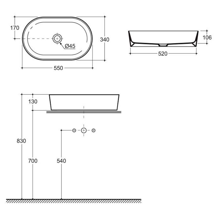 Умывальник накладной Керамин Арена 55 ФС (серый матовый)