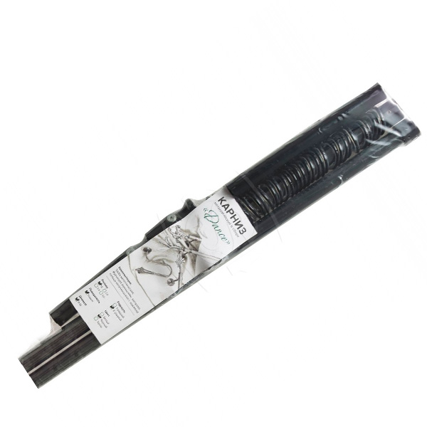 Комплектный металлический карниз 19 мм с декоративным элаксированным покрытием. Благодаря открытым держателям штанги накладываются просто и без демонтажа держателей. В комплекте металлические кольца с вкладышами и зажимами из расчета 10 колец на 1 пм. штанги. Держатели оснащены монтажной опорой для упрощения монтажа.