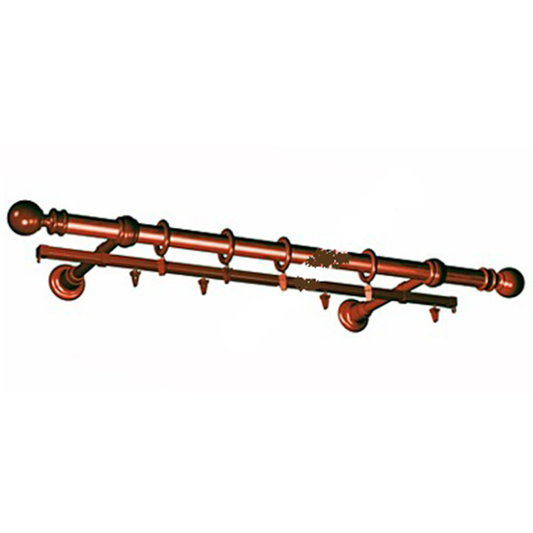 В состав металлопластикового карниза входят: направляющая, кронштейны, кольца с зажимами. Направляющая представляет собой тонкостенную металлическую трубу диаметром 28 мм, покрытую цветной плёнкой имитирующей разные породы дерева. Кронштейны крепления изготовлены из пластмассы в тон направляющей и обеспечивают её крепление к стене. На концы направляющей устанавливаются наконечники разных геометрических форм. Кольца с зажимами для крепления штор могут свободно перемещаются по направляющей. Длина металлопластиковых карнизов диаметром 28 мм: 1.4 м, 1.5 м, 1.7 м, 2.0 м, 2.25 м, 2.5 м, 2.8 м, 3.0 м, 3.4 м, 4.0 м, 4.5 м, 5.0 м.