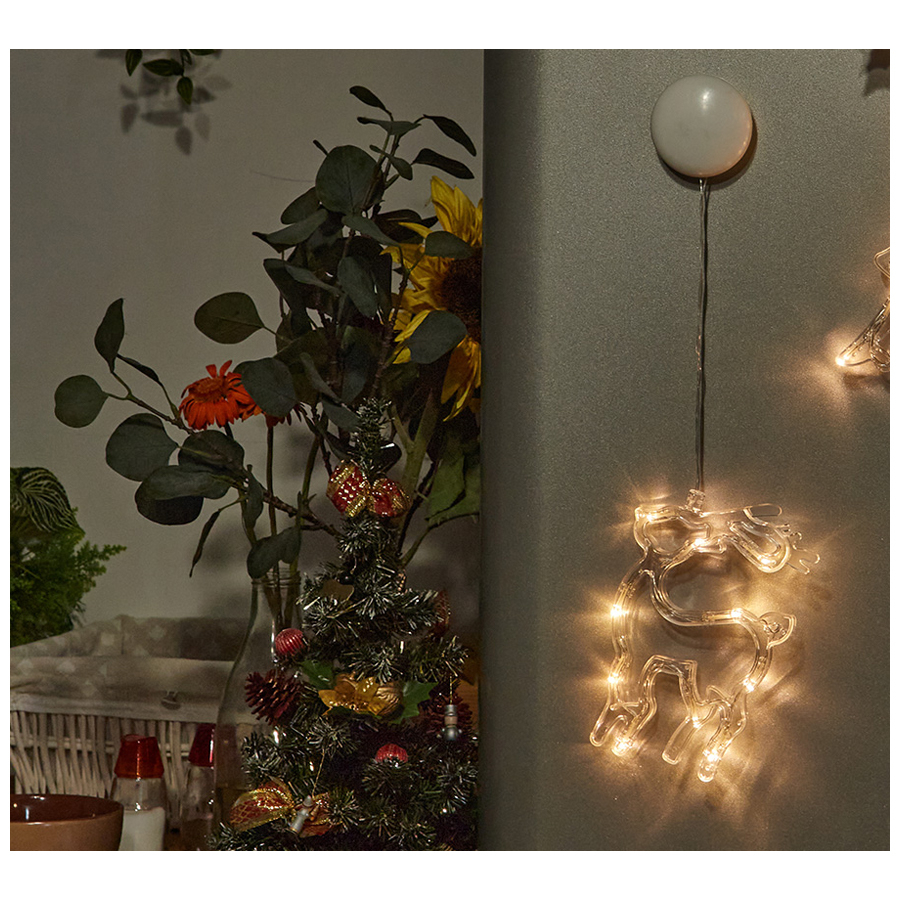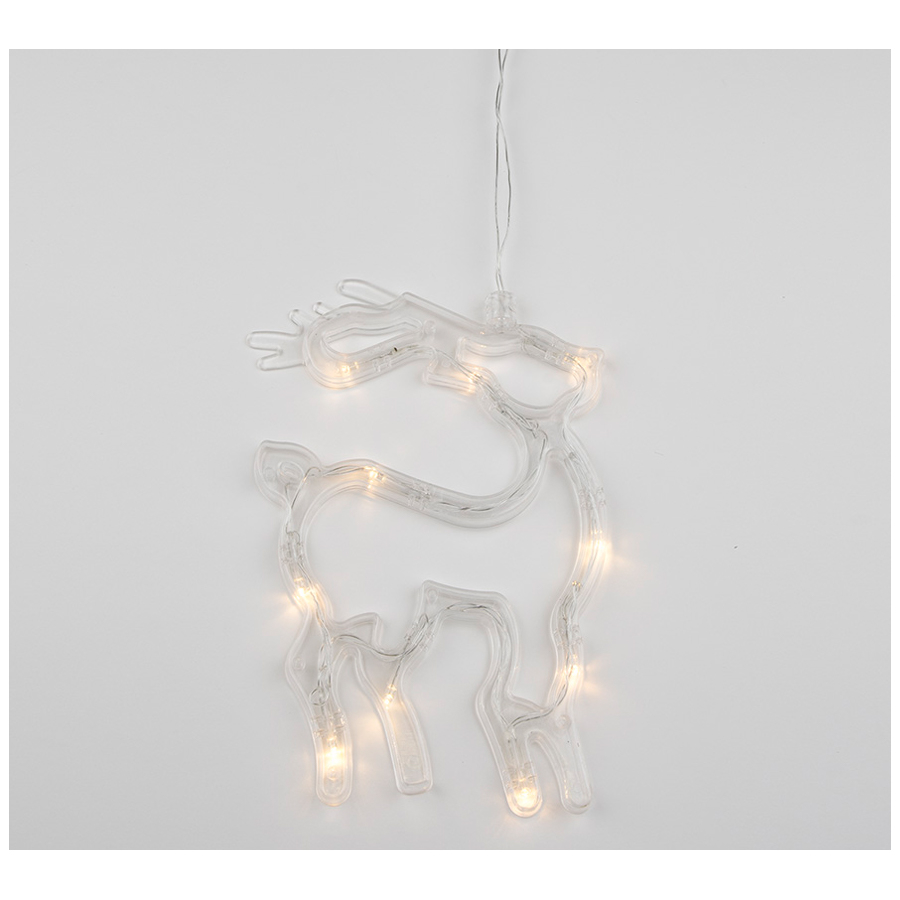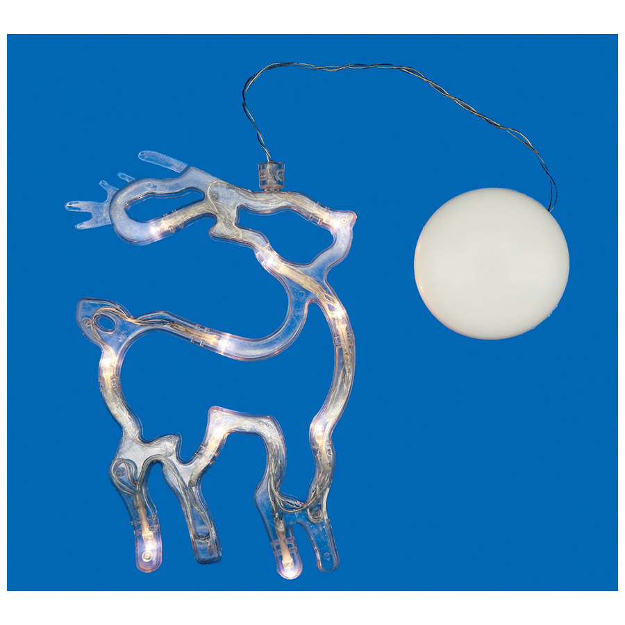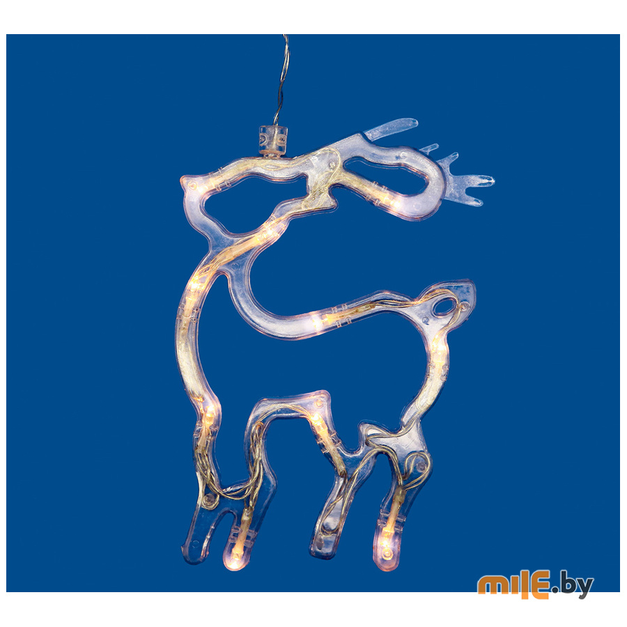 Декоративное украшение светодиодная фигура Олень прекрасное решение для создания новогоднего настроения в любом интерьере. Оленя можно расположить в любом месте комнаты. Фигура крепится с помощью присоски на ровную гладкую поверхность (стекло), которую необходимо сначала обезжирить. Присоска расположена на батарейном блоке, длина провода от фигуры до блока 20 см. Источник света 10 светодиодов с теплым белым цветом, тип свечения статическое.