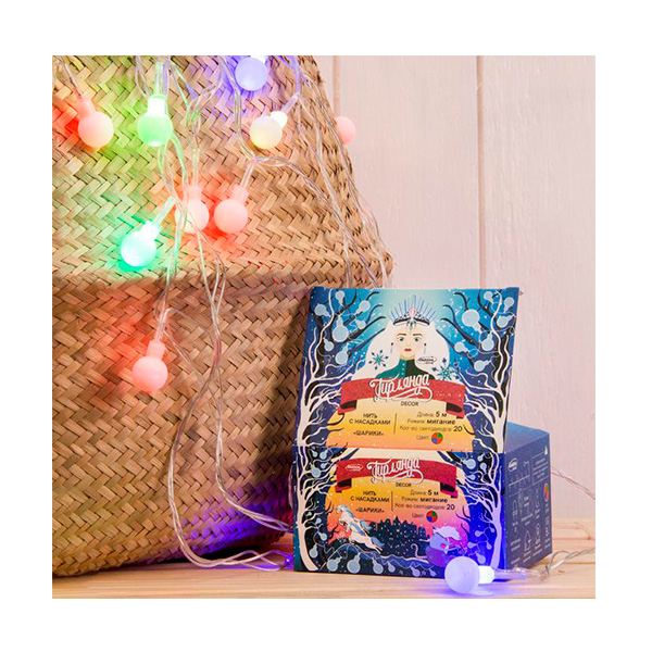 Иногда классических гирлянд бывает недостаточно. Душа требует новых форм! Вы хотите, чтобы на вашей ёлке сияли шишки, под потолком светили звёзды, а на подоконнике блестели снежинки? Вам на помощь придут светодиодные гирлянды с насадками. Они сочетают все достоинства современных диодных гирлянд с многообразием советских «ёлочных фонариков». Ёлочки, звёздочки, ракушки, кубики и цветочки — ассортимент огромен! Какой бы необычной ни была ваша задумка, вы непременно найдёте нужную форму, идеальный размер и «тот самый» цвет. Хотите ли вы выделиться из толпы или украсить ёлку «как в детстве», гирлянды с насадками — лучший выбор. Гирлянда с насадками «Шарики» порадует вас насыщенным цветом, нетривиальной формой, нежным сиянием. Она имеет низкое энергопотребление и долгий срок службы.