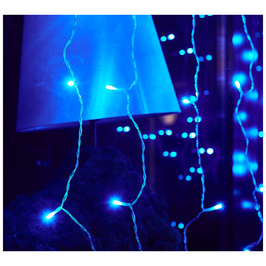 Занавес светодиодный с эффектом мерцания, соединяемый. Занавес с белым и синим свечением, незаменим для декоративной подсветки и украшения интерьера, легко монтируется. Светодиодный занавес длиной 3 метра и 2 метра в высоту, имеет 240 светодиода, предназначен для использования в помещениях. Благодаря светодиодам общей мощностью 6 Вт, его отличительной особенностью является превосходная яркость и низкое энергопотребление. Входное напряжение для подключения светодиодной гирлянды 180-220 В через сетевой кабель длиной 1,5 метра. Срок службы составляет 30000 часов.