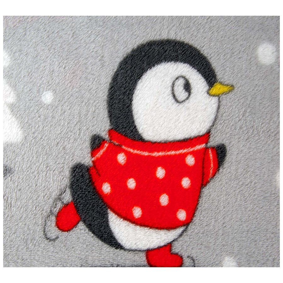 Веселый принт на светло-сером фоне с милыми, зимними пингвинами, катающимися на катке. Плед с дизайнерским принтом станет оригинальным решением в детском интерьере и подойдет как для покупки домой, так и для новогоднего подарка.