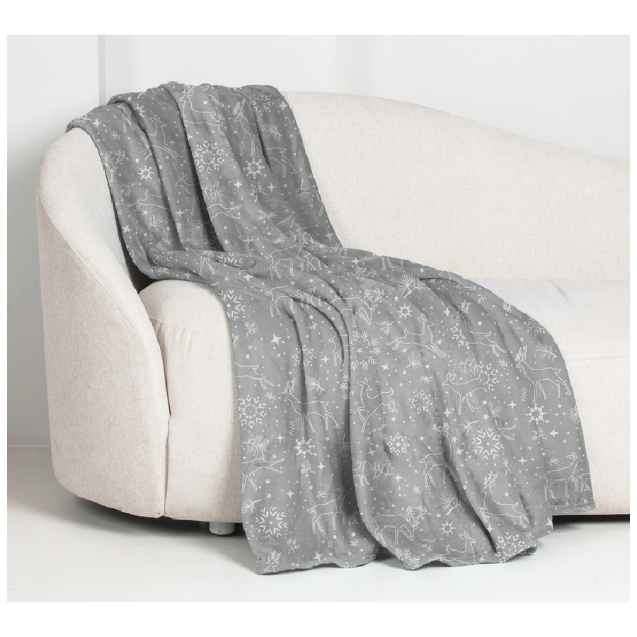 Спокойный новогодний рисунок оленей и снежинок на сером фоне дополнит любое пространство и отлично подойдет как для покупки домой, так и для подарка любимым.
