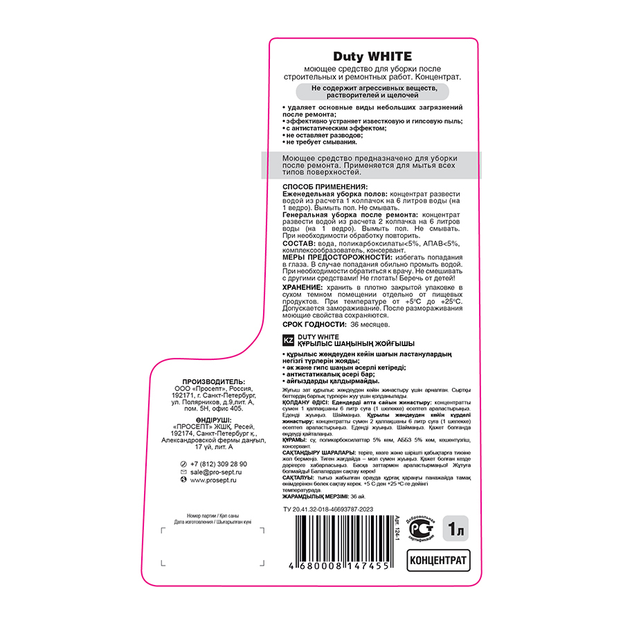Средство для удаления строительной пыли Prosept Duty White 1 л