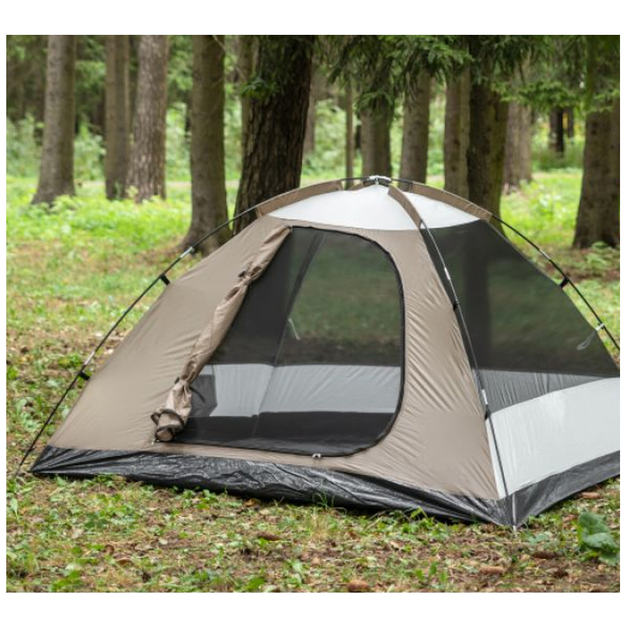 Палатка Coyote Kansas-3 CL-B21-3P-Sand имеет два входа, а также тамбур для вещей и два смотровых окна.
