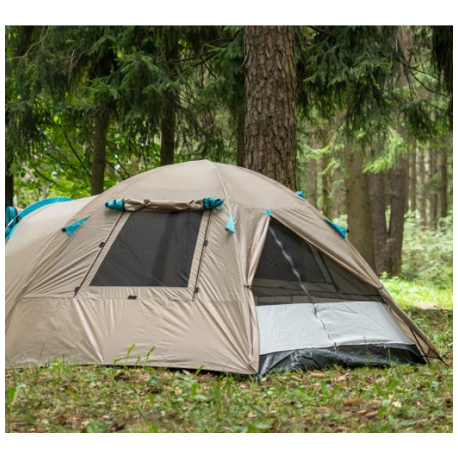 Внешний тент из полиэстера 190Т влагостойкостью 4000 мм, внутренний дышащий тент из полиэстера 180Т, швы проклеены.