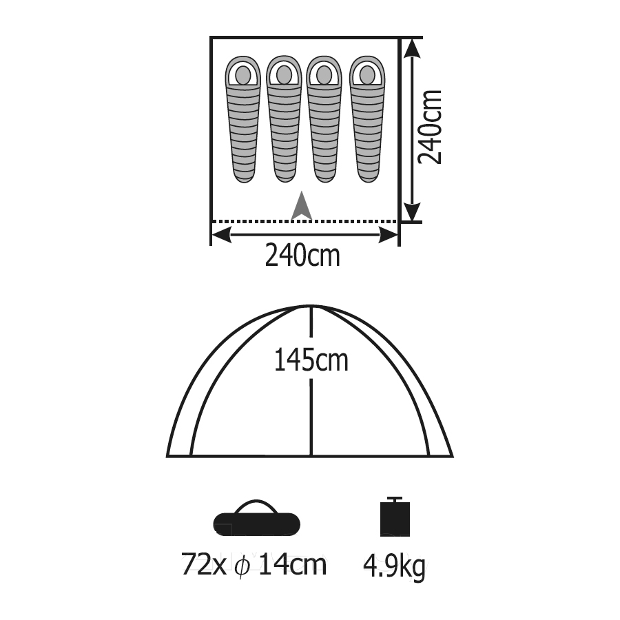 Материал тента: полиэстер (185T with PU coated), водостойкость тента 1500 мм.