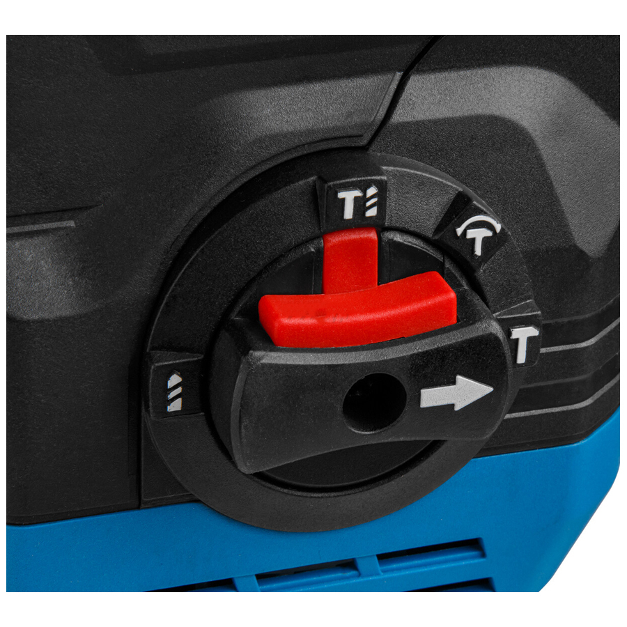 Перфоратор имеет 3 основных режима работы: сверление, сверление с ударом и режим отбойного молотка. К тому же модель оснащена функцией Vario-lock с 12 фиксируемыми положениями зубила. Энергия удара 1-7 Дж. Число ударов 1500 - 4500 уд/мин. Число оборотов холостого хода 50-950 об/мин.
