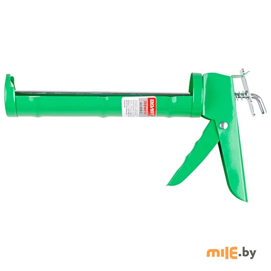 Пистолет для герметика полукорпусной 310 мл ВОЛАТ (36040-01) применяется при герметизации. Конструкция пистолета представляет собой стальную рамку скелетного типа, курковый механизм со штоком и рукоятку. Корпус является емкостью для баллона с герметиком, курок приводит шток с поршнем в движение, в результате чего герметик поступает из баллона на обрабатываемую поверхность.