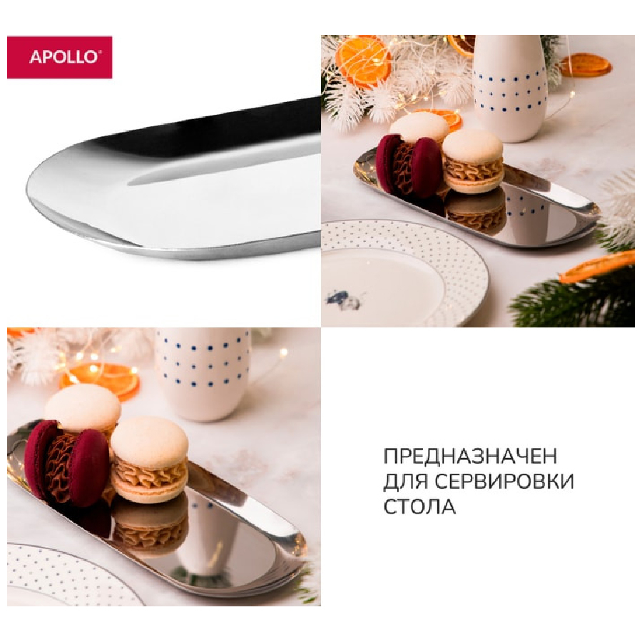 Сервировочный поднос Apollo Teatro — идеальное решение для стильной и функциональной подачи блюд! Серебристый цвет придаёт этому изделию изысканность и роскошь, а нержавеющая сталь гарантирует прочность и долговечность. Размер подноса составляет 23x9,3 см, что позволяет удобно разместить на нём тарелки, закуски, фрукты или десерты. Этот сервировочный поднос станет прекрасным дополнением к вашему столу и создаст атмосферу уюта и комфорта во время приёма пищи. Он подойдёт для использования как в домашних условиях, так и в ресторанах, кафе и отелях.