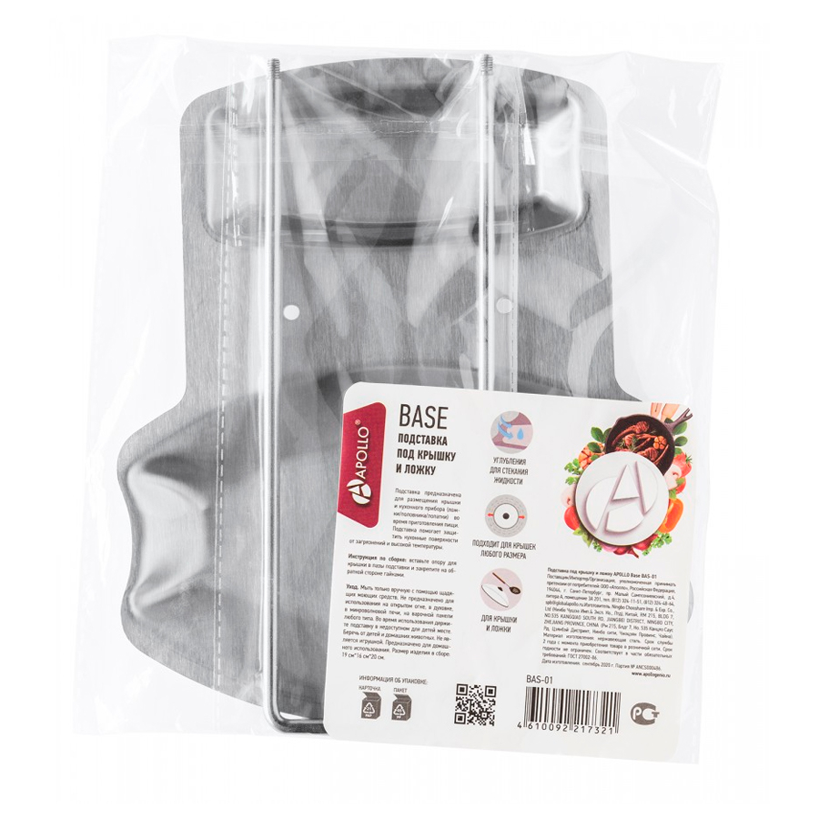 Подставка предназначена для размещения крышки и кухонного прибора (ложки/половника/лопатки) во время приготовления пищи. Подставка помогает защитить кухонные поверхности от загрязнений и высокой температуры.